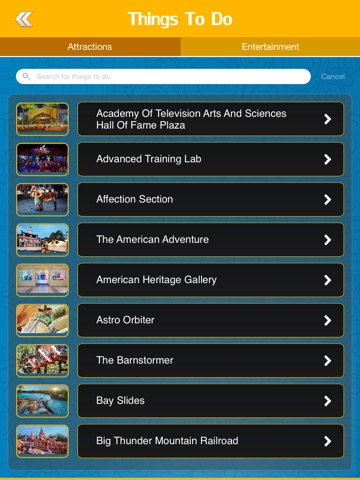 √ Each attraction provides feature details, extensive descriptions about the ride or show, touring tips, attraction facts, history, statistics.