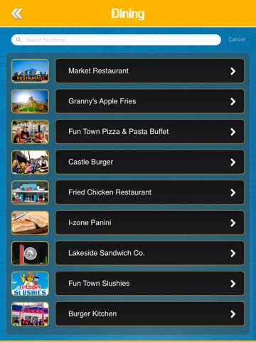 √ Full dining menus for all park restaurants, carts and stands
