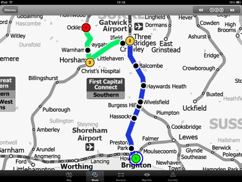 The map is hand drawn by and provides a unique geographically based view of the Great Britain rail system. You can also use your inbuilt GPS to accurately locate and track yourself and see the nearest transportation stop and distance to it. This is the only rail transportation route planner with this ability. Tap on the map for location information, use the inbuilt search feature or choose from a list of locations.