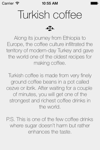 Great design. I was disappointed by this app because it barely gave me any space specifications on how to make the coffee. It was way too general. I wouldve liked to known at what temperature they recommended the water and such. I wish they would add more details and more recipes.