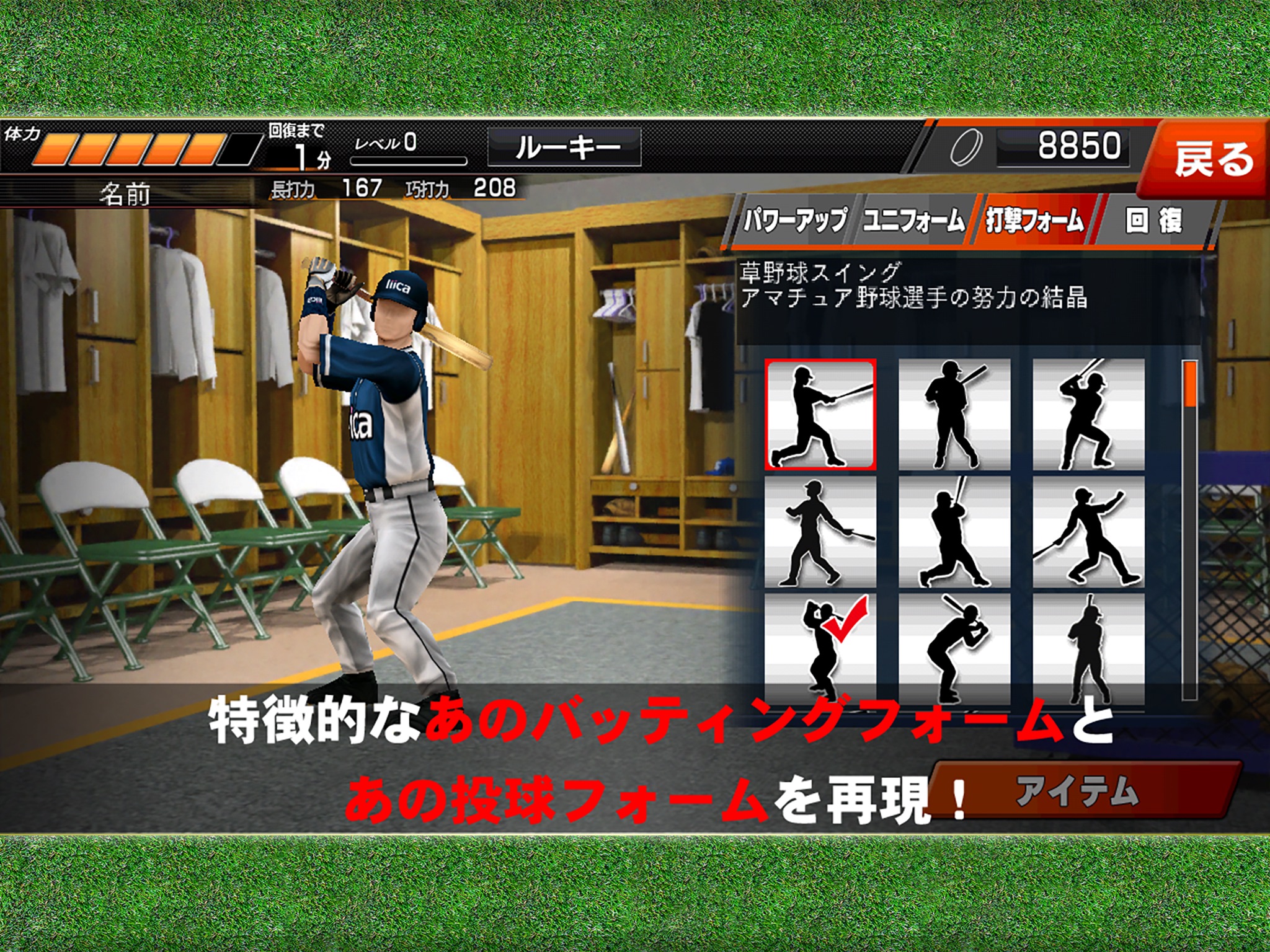 ●アイテムを装備すると長打力(飛距離が伸びる)、
