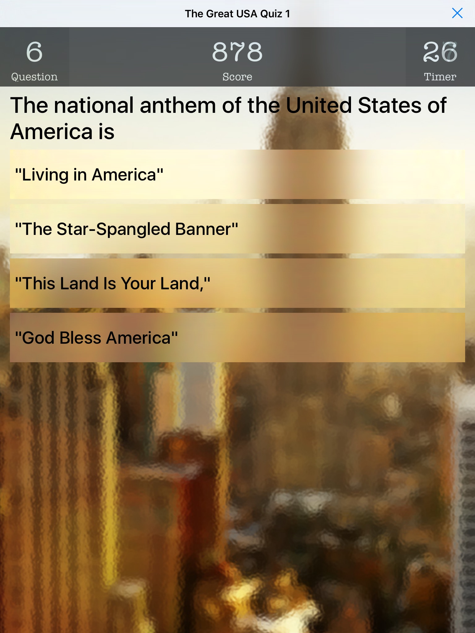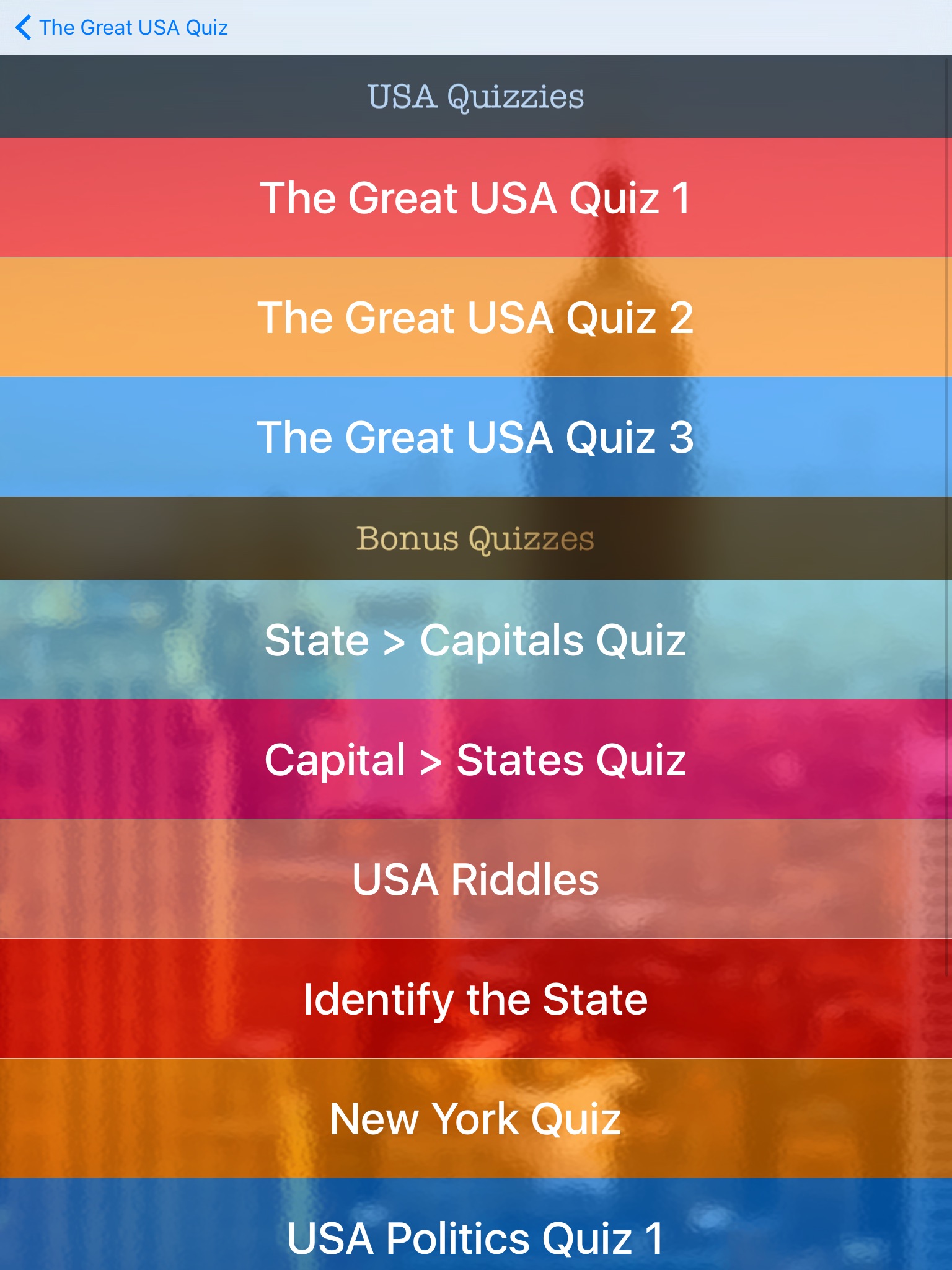 This USA quiz app will help to Increase your GK (General knowledge) of United states. United states Quiz can be also very help full to preparing for competitive exams and civil services exams like UPSC, IAS, CET, IPS AIEEE, SAT, MCAT, LSAT, GMAT, GRE, IELTS and the TOEFL.