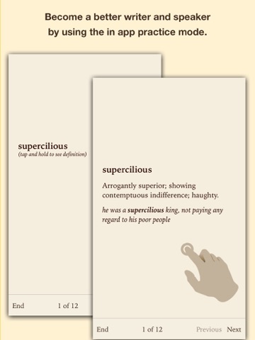 Everyday, when you have a few minutes, practice and review all your words with the built in flash cards. By practicing everyday, youll become a better writer, speaker, and communicator.