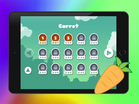 Greedy Rabbit is dynamic and funny arcade game. Find and eat all vegetables and go out from level. In each level you have to collect all the vegetables and possibly star. Then look for the open passage to the next level. You wait hazards: spikes, traps and very angry hedgehogs. Do this with the best result.