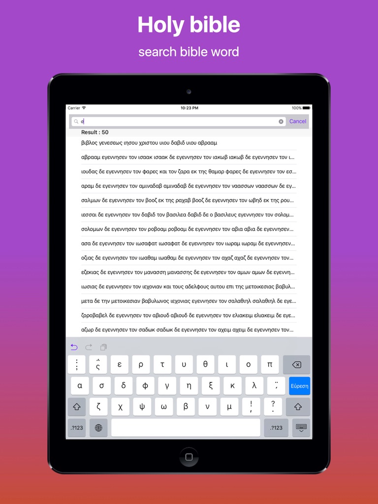 As a praise to the lord, I am happy to bring this Greek Bible application for iOS devices. Having felt that, there is no common version of Bible in the app store.