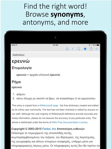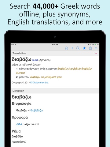 * 44,000+ Greek definitions, all available offline! Bonus content available in online mode.