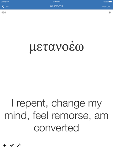 The perfect Koine Greek flash card app. No more carrying a stack of flash cards around anymore. Its all right there on your iPhone or iPod touch.