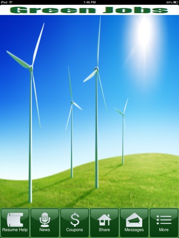 The Green Jobs App lets green job seekers search green jobs nationwide including climate change specialist, wind turbine technician, solar system design engineer, sustainability director, solar installer and more. Find alternative energy jobs and clean tech jobs. Review green salary information, learn about green careers through videos, leave a business card and create a resume for hiring employers.