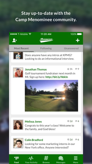 Green Nation is an app developed by Camp Menominee where alumni and staff can share information, resources and memories with fellow members. Connect with a growing community of Camp Menominee alumni and network through the Green Nation business directory. Download the Green Nation app today to start engaging with Camp Menominee in a social and professional capacity.