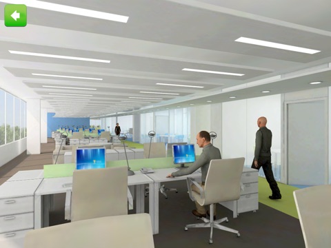En cliquant sur les pastilles réparties de part et dautre du projet Green Office® vous pourrez visualiser lintérieur des bureaux.