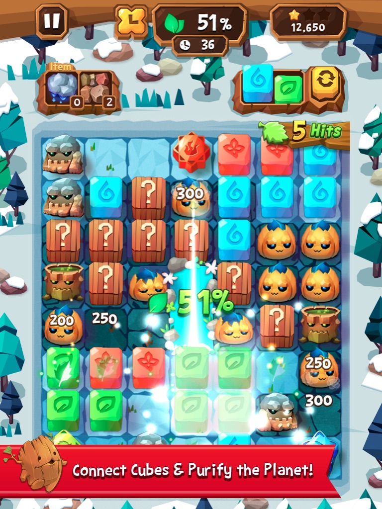 Play across an entire planet of puzzles in this amazing mobile game! Turn the tiles back to green as you spread the lively vegetation through the spotted planet. Return the world to its former beauty by breaking through the slimy, evil cubes. Link together colorful cubes and clear a path to your next location. Turn the planet into a tranquil meadow as you craft new squares, use unique power-up items, and blast away the explosion of contamination!