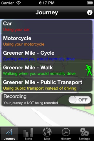 - Track journeys by journey type (walking, cycling, car, public transport, etc).