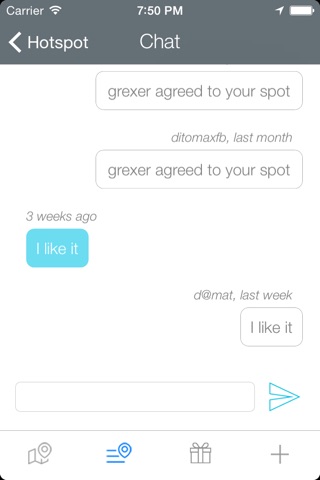 The GREX app shows you which spots are hot right now. More people at a spot means more fun. Each spot has its own chat. Get in touch with other GREXers that like the same spot. You can use the app to show other users that you like the spot where you hangout. By sharing this information you support this spot and you attract more people to come to this spot.