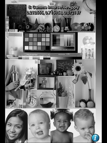 When converting an image from color to greyscale the perceived brightness of each color is matched with its equivalent greyscale tone. The Grey Shaders app includes 7 GLSL shaders that convert a sample color image to greyscale. Users can toggle between the greyscale versions and the original full-color image for optimal A/B comparison.