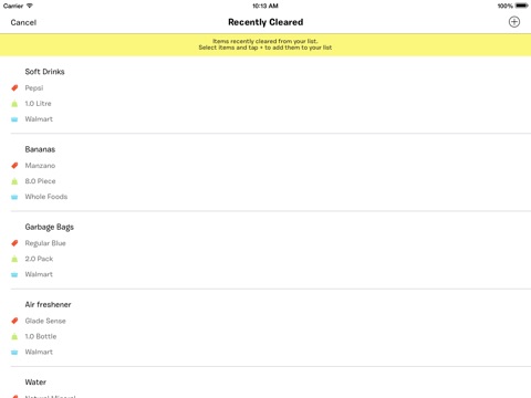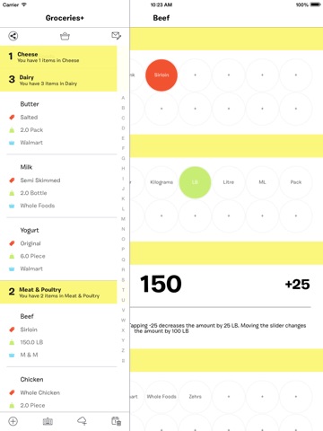Groceries+ is an iPhone, iPad and Apple Watch shopping App that learns your consumption and suggests what you need. Groceries+ understands your text and talk, just write or say a phrase like 250 g of Apples from Walmart and Groceries+ will list it for you. Groceries+ clears all your already bought items by just shaking your iPhone and a lot more...