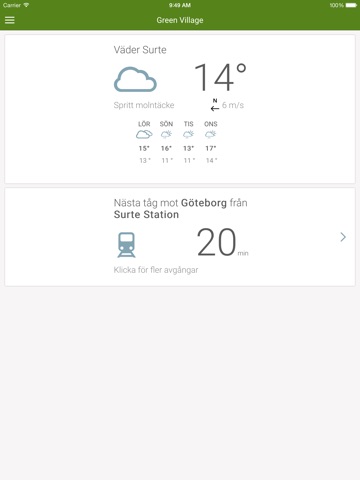 Gröna KnAppen är till för Dig som bor i Green Village - Surte! Appen hjälper dig att styra enheter i ditt boende som är anslutna till hemautomatiseringen. Gröna KnAppen hjälper Dig även att hålla koll på vädret och kollektivtrafiken i området. För att använda appen krävs det att rätt hårdvara är installerad i Din bostad.