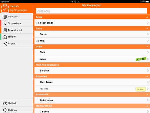 Grosh is like no other grocery shopping app you have seen. It’s got an attractive modern design, can be updated across multiple types of devices, comes with intelligent suggestions, and helps you find groceries in the shop. It’s FREE and always will be.
