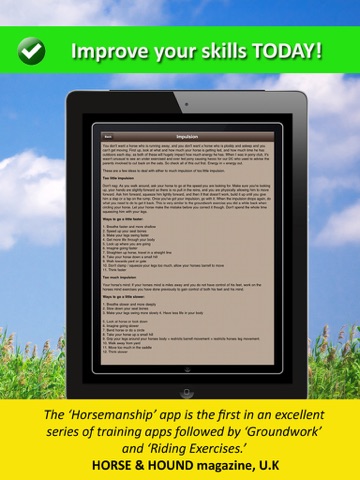 "The ‘Horsemanship’ app is the first in an excellent series of training apps followed by ‘Groundwork’ and ‘Riding Exercises.’ HORSE & HOUND magazine, U.K."