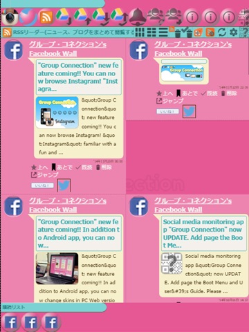 Integrated client app Group Connection can be used multiple SNS (Facebook, Twitter and RSS Reader) has unique and convenient features.