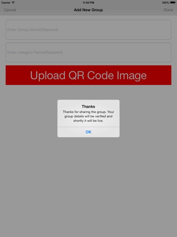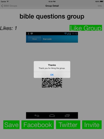 Group finder for BBM users give you simple and easy way to find groups of your interest. It also allows you to add your group to channel. Also one can share group QR Code over Facebook, Twitter or through an email.