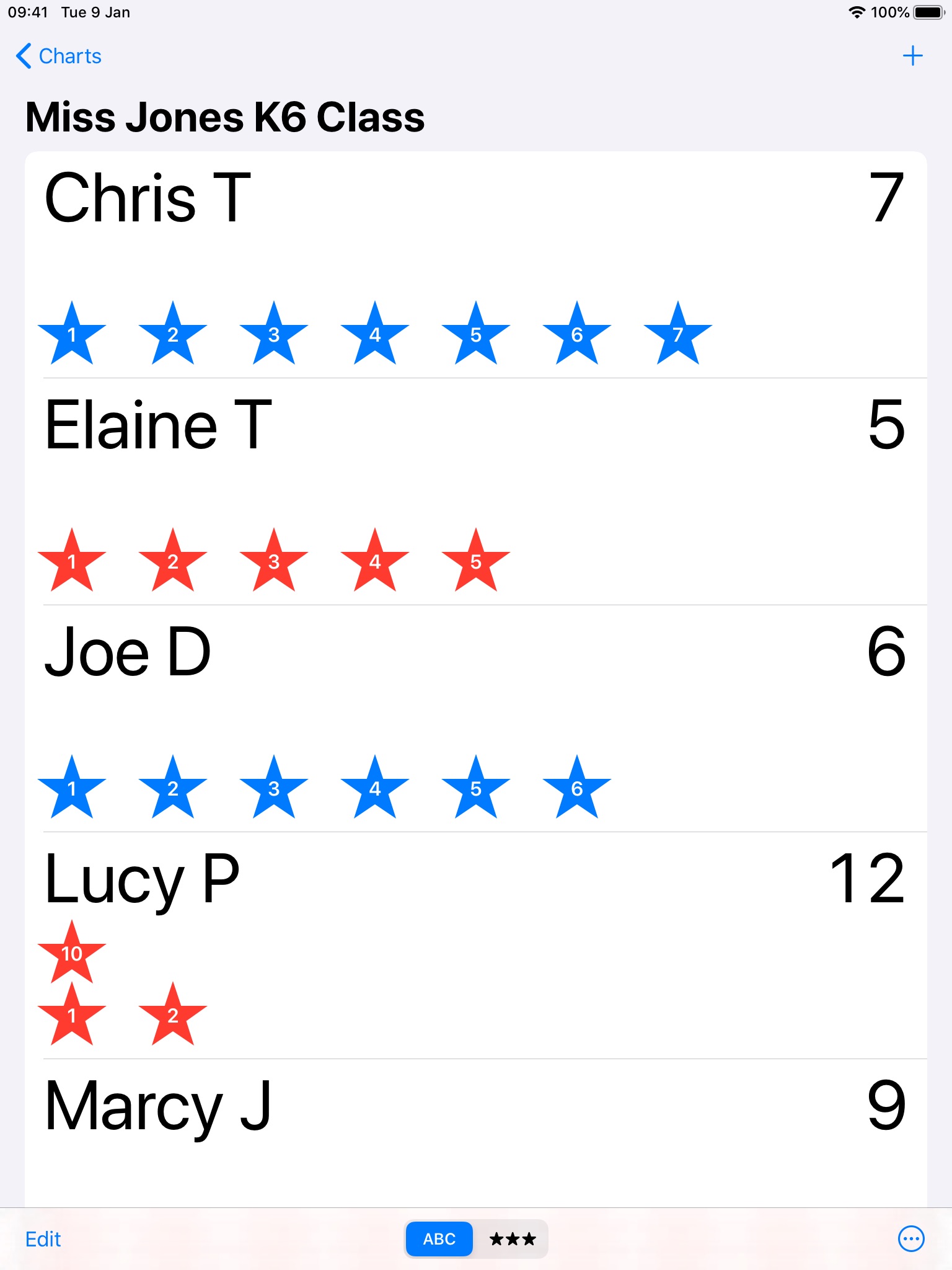 The apps appearance and user interface is deliberately simple to make it easy to use and understandable by children of all ages. There is a row for each child which clearly shows the number of stars they have. Tap a row to add a star (up to 99 or a chart-specific target, if required). Its that easy.
