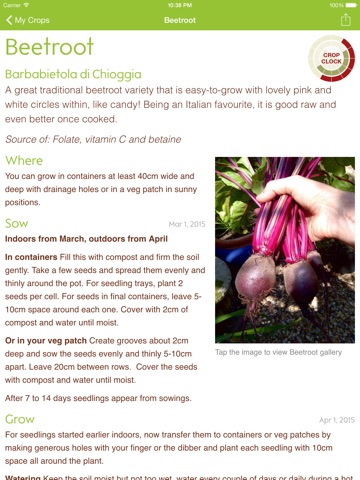 The app allows you to set a special crop timer for each of the six different sorts of plant you can grow and to re-set the timer every time you plant new seeds. The crop timer reminds you what to do when and when your plants will be ready to harvest and sell. You can receive reminders for all the important stuff in between and use the Q and A for any tricky questions.