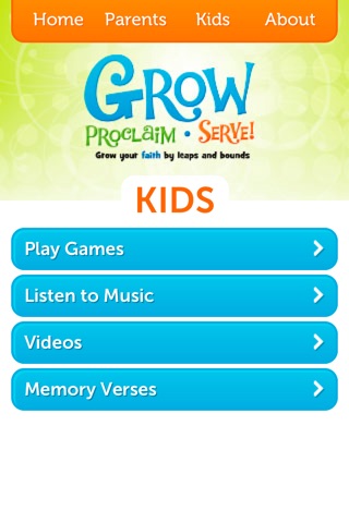 Grow, Proclaim, Serve! Mobile app is an extension of the popular Sunday school curriculum by Cokesbury. With this free app, parents and children will be able to stay up-to-date with monthly memory verses, play interactive games, and read popular articles. If you have internet access from your device you can also listen to streaming music and review the previous week’s video.