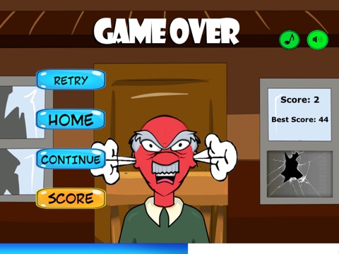 The longer the game plays, the more balls start coming, the grumpier grandpa gets and the redder his face changes.