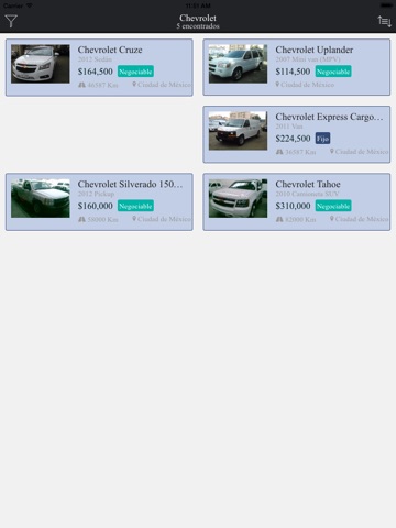Encuentra Motocicletas, Automóviles, Camiones, etc directamente en tu smartphone, ademas puedes filtrar los resultados por precio, año de fabricación, etc con la posibilidad de contactar al vendedor directamente desde la aplicación.