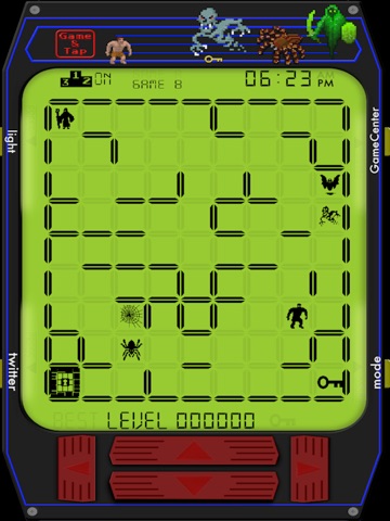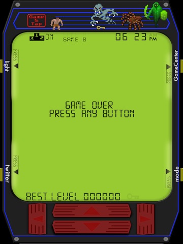 Toca los cuatro botones del reloj y podrás activar o desactivar la luz, activar GameCenter, sube tu record en twietter o cambiar del modo de juego A al B.