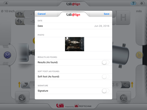 Combined with the measurement components from PRÜFTECHNIK including a Bluetooth® module, the GTI@lign app composes a wireless laser shaft alignment system for tablets and smart phones. The app is dedicated to standard shaft alignment including quick alignment checks on machines such as a motor-pump combination.