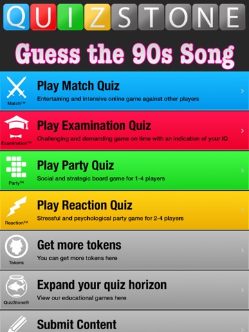 Play the 90s Music Quiz against yourself, start the party or challenge friends and family to a quiz game. Six different game modes and hours of entertainment and knowledge is simply waiting for you..