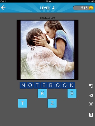 Play pop culture themed word games where you figure out a movie title or star from the pic the game gives you. As you win, you unlock and collect different stars, proving your mastery of movie trivia!