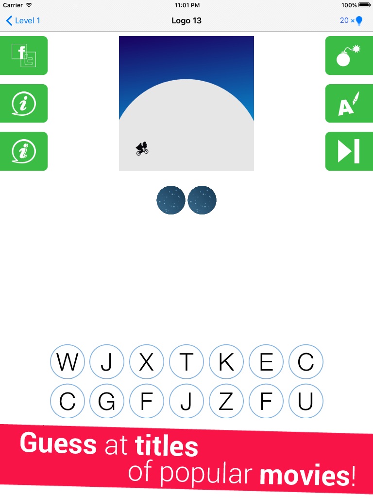 "Guess The Movie Quiz" is a free word game full of fun that consists on guessing the names of hundreds of movies.