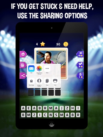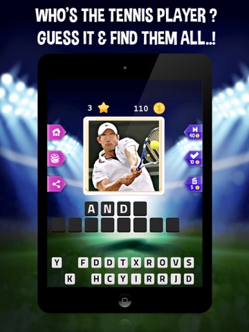 The game app features famous tennis stars to be solved. If you get stuck and need help, then use sharing options. 60+ Legends of Tennis packed into one game! HOW MANY OF THEM DO YOU KNOW? Can you Guess all the Tennis Players !!??