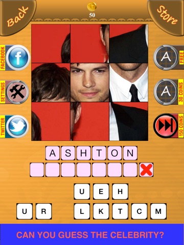 4 different options to help you pass each level if your stuck. Skip a level, insert a correct letter, reduce image matrix and share the image and letters on Facebook/twitter and get help from your friends.