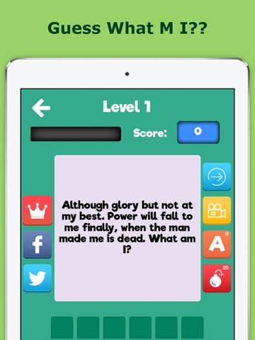 I bet you are gonna an addict, engaged with it for hours, Guessing Riddles again and again using Free letters, Tapping Bomb letters to remove irrelevant letters, even collecting points to jump to next level as fast as you can.