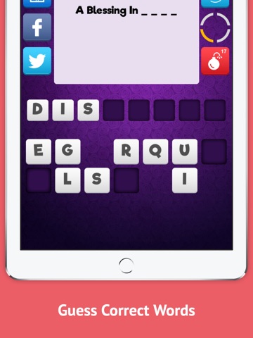Twitter, Tap t Icon to tweet active question to engage your followers for guessing correct word for you.