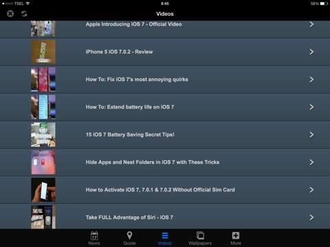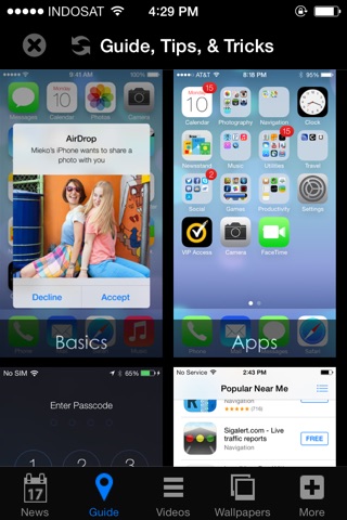 GUIDE360 for iOS 7 Users - Guide, Tips & Tricks Videos, Wallpapers ALL in ONE! can help you make most use of your devices with iOS 7. All the trick and tips of Guide for iOS 7 are from the professional ios users, and it is your best assistant to set up iOS 7.