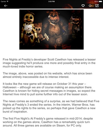 * Lots of new tricks, tips, strategy and wiki for Five Nights at Freddys