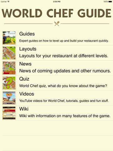 • Guides to all achievements of World Chef