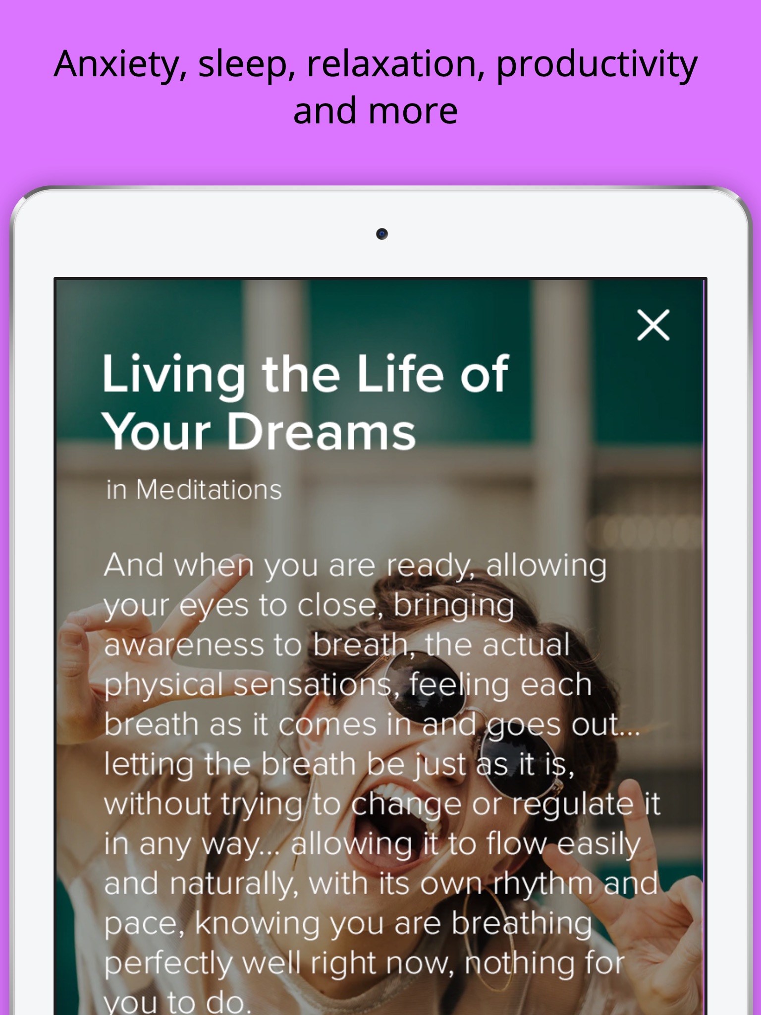 This app includes hundreds of hours of guided meditative tracks. We add new stuff weekly. Here’s a sample of the tracks offered to invite you to that zen state of mind.