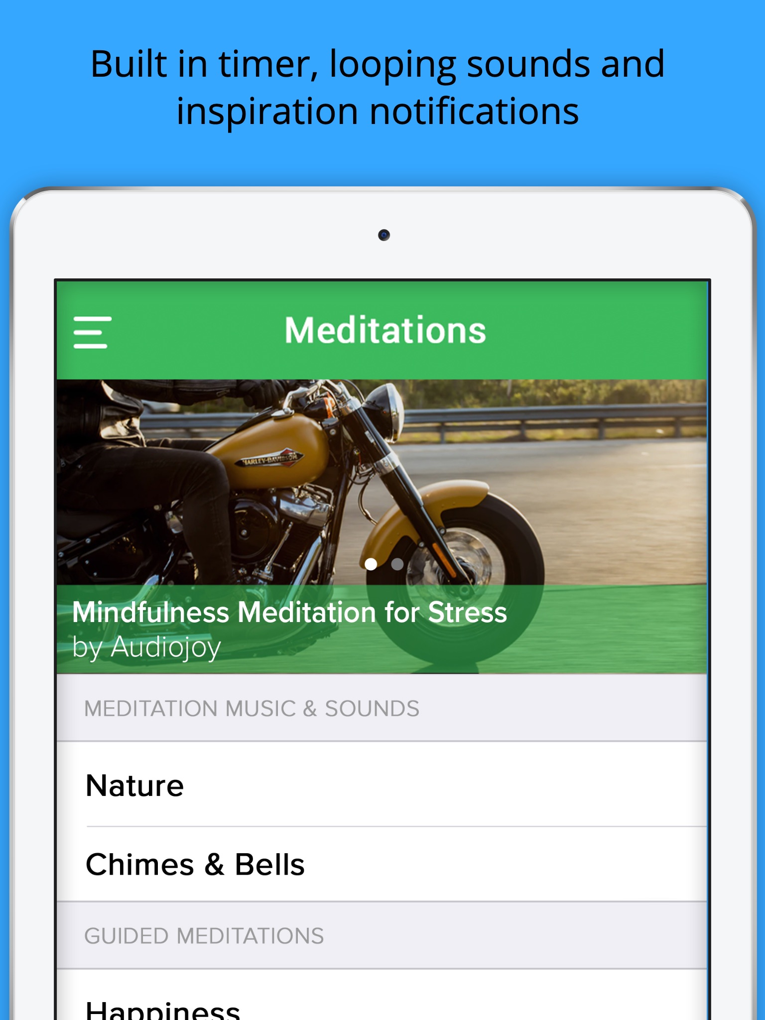 Listen to guided meditations, sleep sounds, mindfulness music, audio courses and relaxing sounds for a daily practice. Set timer to further customize your practice!