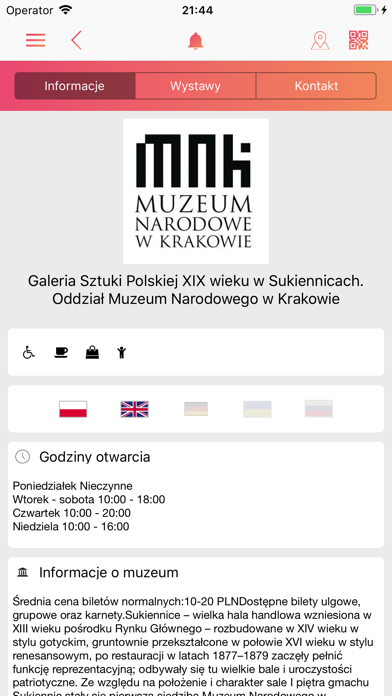 • Znajdź najważniejsze informacje o muzeach, godziny otwarcia i udogodnienia dla zwiedzających (między innymi: oprowadzanie w języku migowym, dostępność obiektu dla osób niepełnosprawnych, przewijak dla niemowląt czy wejście z psem do muzeum)