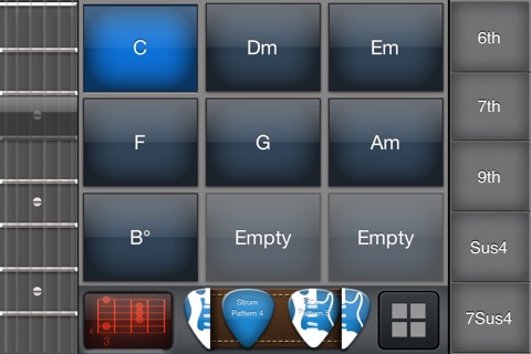 - Record your own or use inbuilt strum patterns for one touch strumming