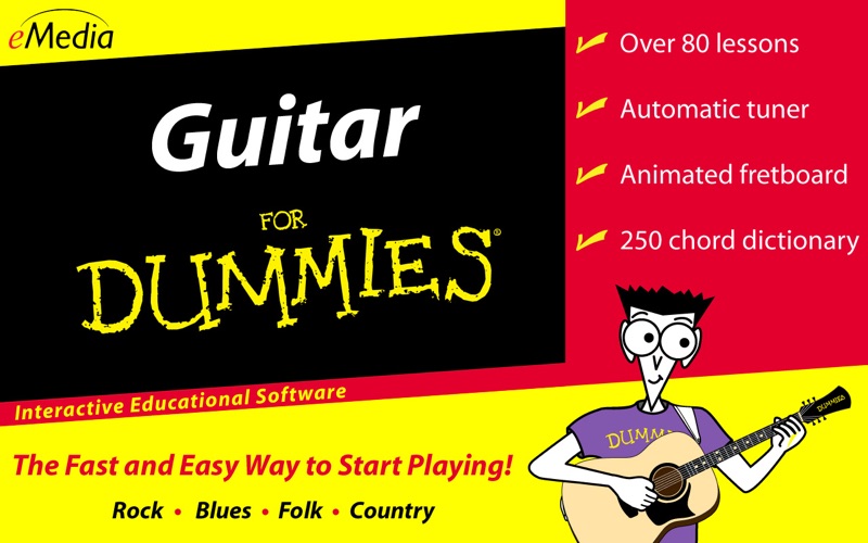 eMedia Guitar For Dummies is a fun and easy way to learn guitar quickly. Learn to play acoustic or electric guitar at your own pace with techniques demonstrated in full-motion videos. Have fun playing along with live recorded songs or MIDI tracks that you can slow down or speed up.
