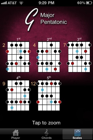 - Blue dots are passing notes. Including these notes puts you in a Blues mode.