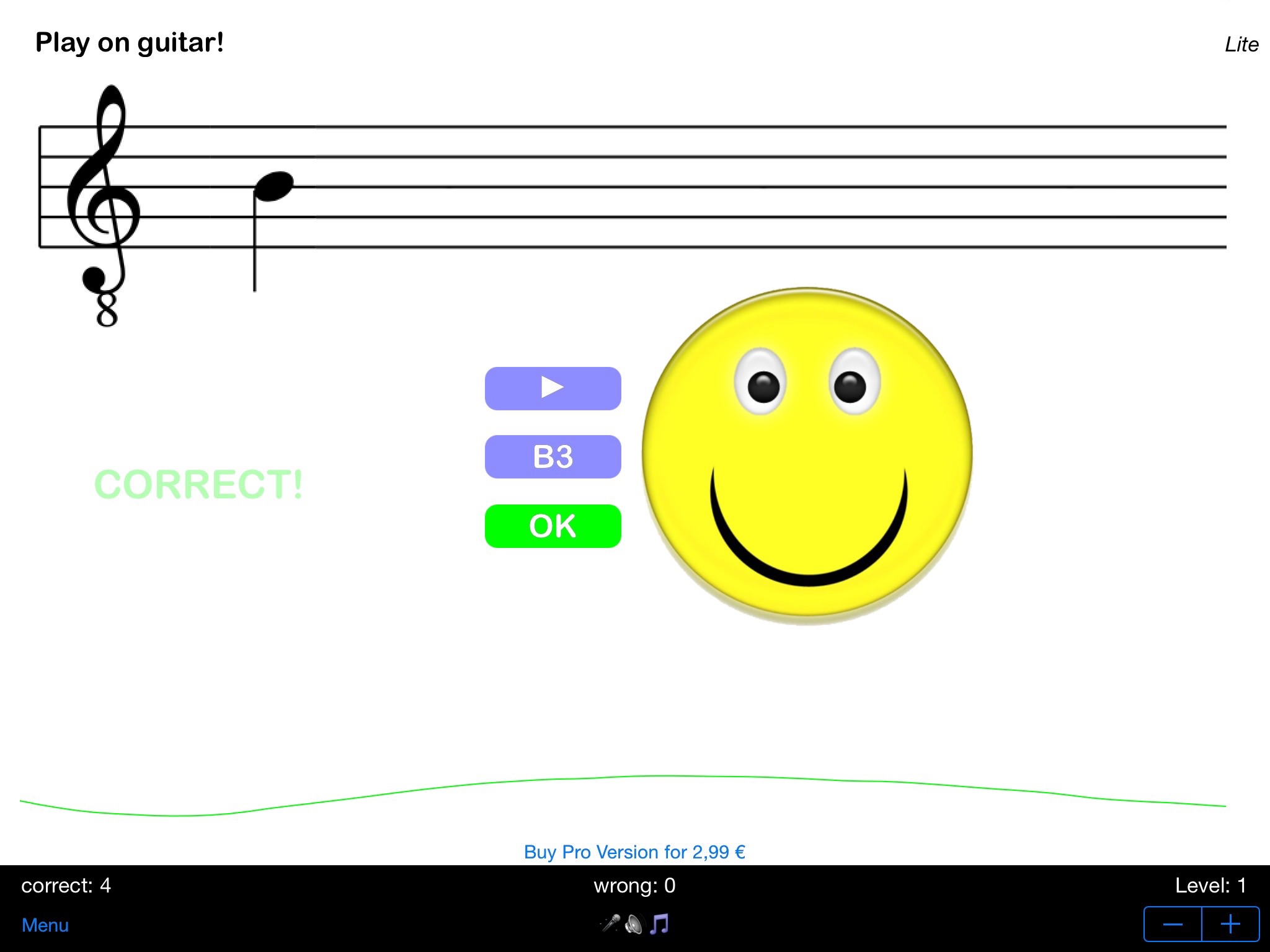 Many guitar players still think that reading guitar scores is particularly difficult. The "Guitar Score Trainer" will prove them wrong. The virtual fret board makes it very easy to learn the actual position of the note in the score. Seven well-structured levels will teach you all the notes in the first position.