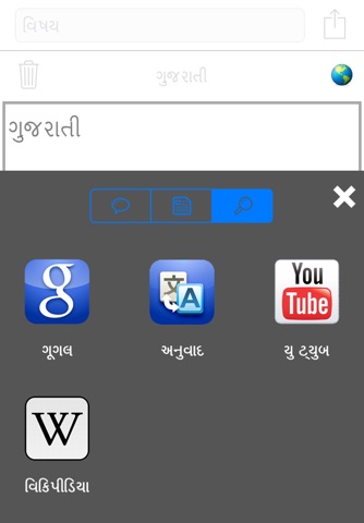 - switch between the custom Gujarati keyboard and any iOS keyboard (for example, if you want to type an email address in the middle of a Gujarati message)