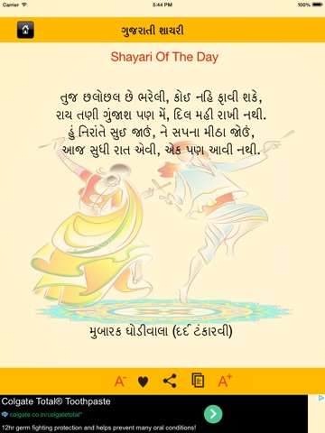 Gujarati Shayri is a fun application for Gujarati language lovers. It has full packed gujarati proverbs, Gujarati Sayings and Shayris for all age groups.